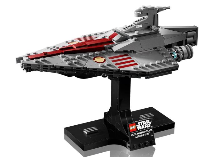 - Build-and-display starship model – Relive dramatic Battle of Geonosis scenes as you build a mid-scale LEGO® Star Wars™ recreation of an Acclamator-Class Assault Ship