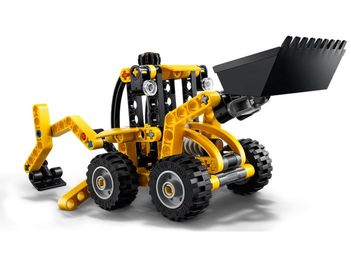 - Try out the scoop and digger – The LEGO® Technic™ Backhoe Loader model includes a scoop that kids can lift and lower using the knob, a back digger and outriggers