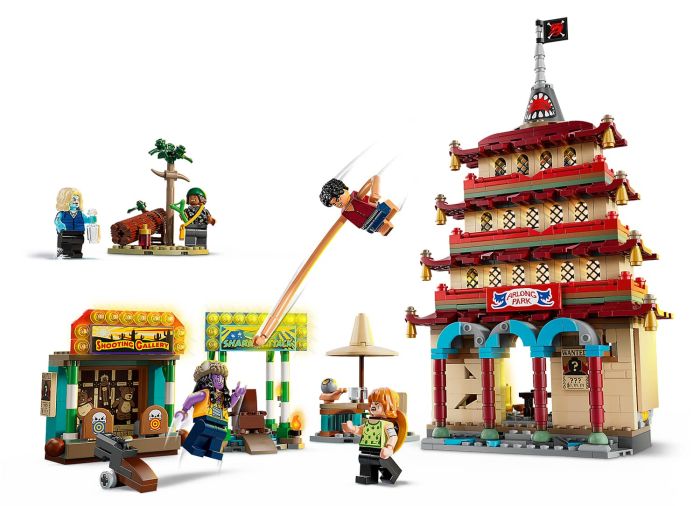 - Action-packed LEGO® pirate toy – Kids can tap the top of the pagoda tower model to explode it, enjoy target practice at the shooting gallery, put the villain inside the shark attack building, and more