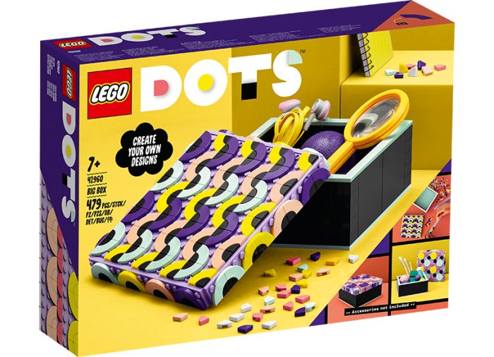 - Make it, design it, use it – Surprise any kid or arts-and-crafts fan with this LEGO® DOTS Big Box (41960) craft kit. The creative fun begins when they open the package and start making the box
