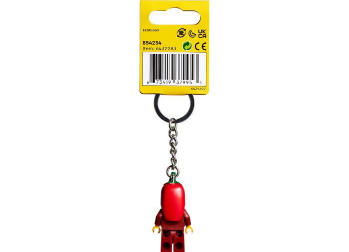 The LEGO® Chili Girl Keyring (854234) combines a practical product with a fun chili-pepper minifigure! Whether attached to keys, bags, backpacks or anything else, the strong metal ring and chain ensure the fiery figure remains securely attached. This fun keyring is a practical gift idea for chili lovers aged 10 and up.