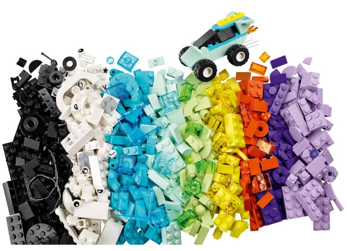 - Toys to create and customize – This versatile set includes lots of colorful bricks, plus eyes, wheels and hinges, to maximize playability