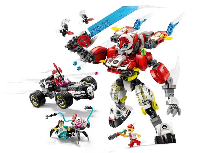The set offers 2 exciting building options, and kids will have lots of fun building a red gaming aircraft before rebuilding it as a tiger mech and hot rod car or as a speedy racing car and robot creature. The tiger mech and robot creature are posable and both building modes are loaded with cool features. The race car playset also includes Cooper, Zero and a dreamer minifigure, plus Z-Blob, a Cyber Brain Spider and 2 Cyberlings, who bring the action to life and spark imaginative role play.