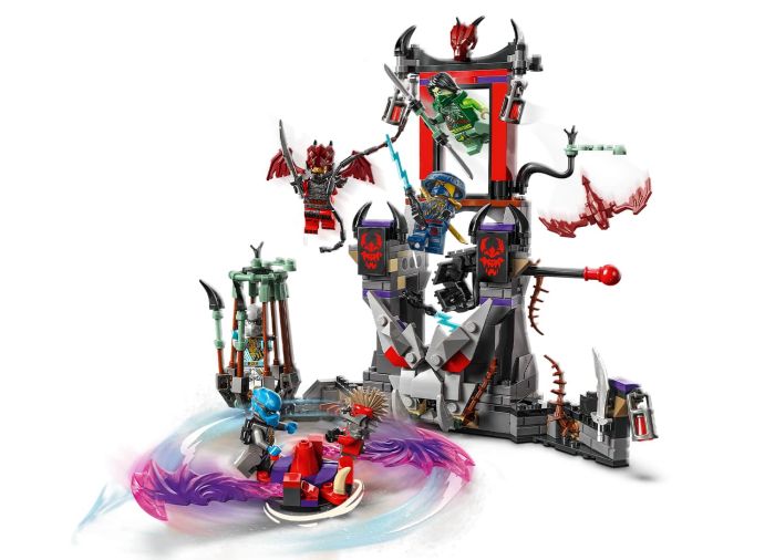 - Interactive ninja toy – Includes a cage to detain ninja characters, a retractable bridge and a pit with a skeleton for the ninja to fall into