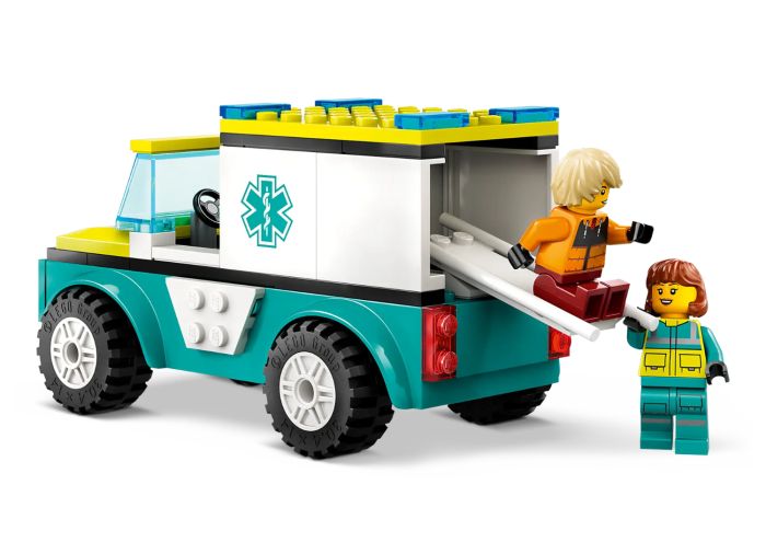 - Toy ambulance playset – Join your little builder for quality playtime with this LEGO® City Emergency Ambulance and Snowboarder building set for kids aged 4 and up