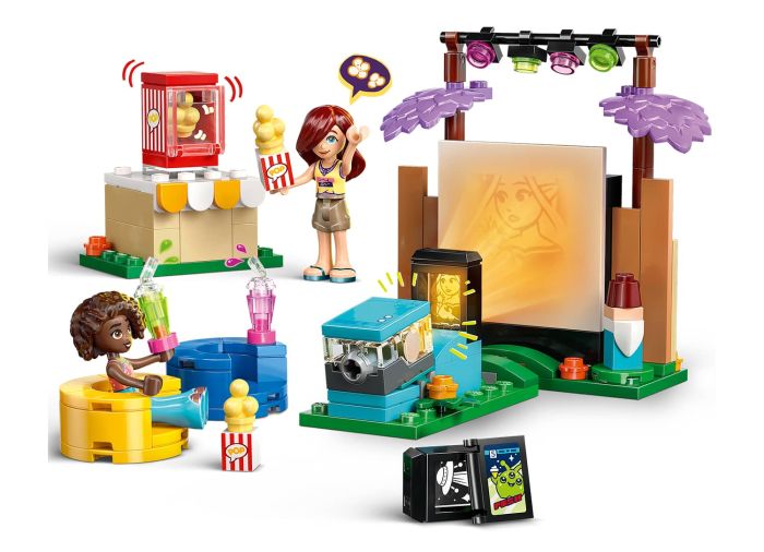 - 2 LEGO® Friends characters – This pretend-play toy comes with minidolls Paisley and Aliya, inspiring kids to create different social situations as the friends watch movies in Paisley’s garden