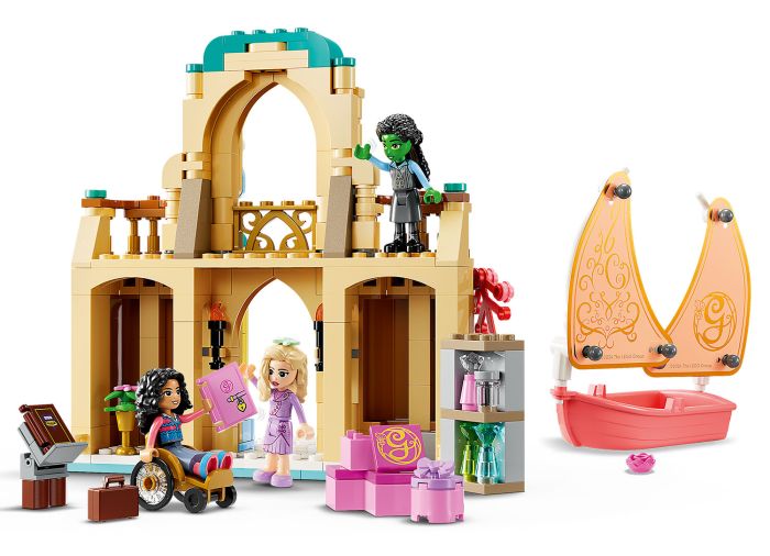 - Magical dollhouse playset and sailboat for kids – The LEGO® Wicked Glinda, Elphaba & Nessarose at Shiz University set recreates an iconic moment from the movie where the girls meet for the first time