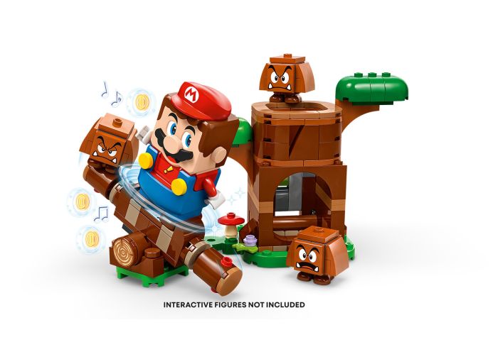 - LEGO® brick-built adventure toy – Press the lever at the back of the buildable tree trunk to make a Goomba pop out or play with the Goombas on the seesaw