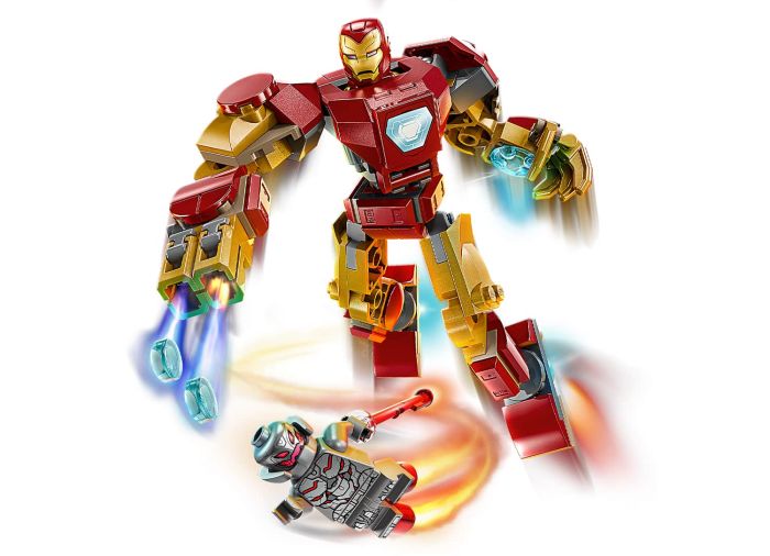 - Buildable Iron Man mech – The posable figure has movable arms, legs and fingers and the torso opens to reveal a cockpit that can hold the Iron Man minifigure