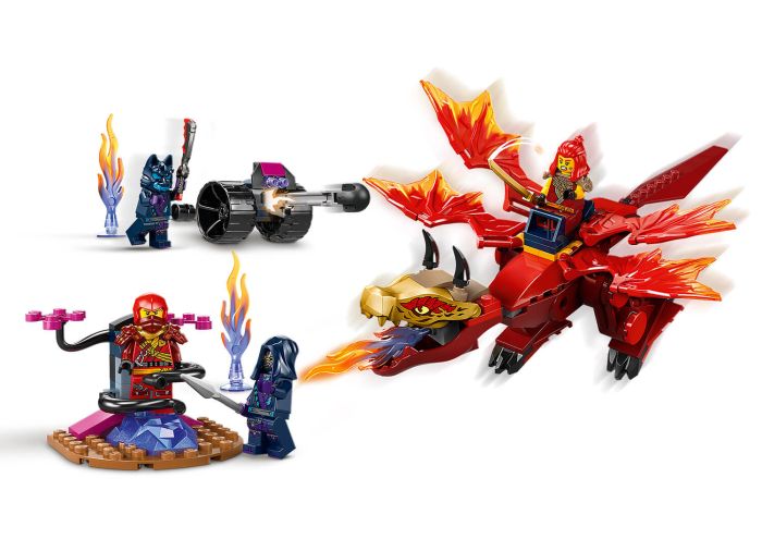 The LEGO® NINJAGO® Kai’s Source Dragon Battle (71815) adventure playset helps kids aged 4+ learn how to build while they enjoy exciting ninja adventures in the NINJAGO universe. This action toy features a red dragon model that kids can pose by moving its jaw, head, tail, legs and 4 wings. Kids can also place a fire element in its mouth to scare villains.