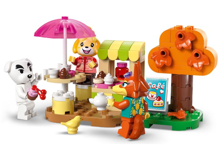 - With 3 recognizable Animal Crossing™ characters – This brick-built playset includes K.K., Isabelle and Audie minifigures, a model of Resident Services with a café and a drivable camper vehicle toy