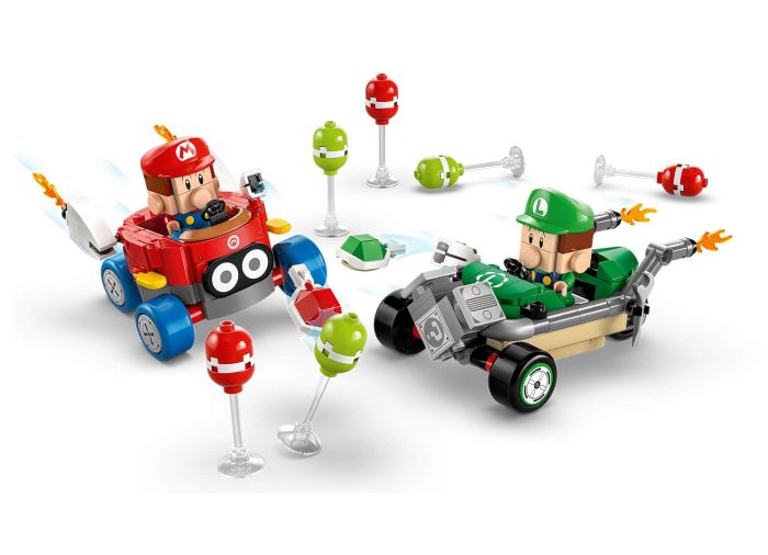 - Brick-built Mario Kart™ set – Join forces with Baby Mario or Baby Luigi for balloon-busting battles and racing action with this LEGO® Super Mario™ adventure toy playset