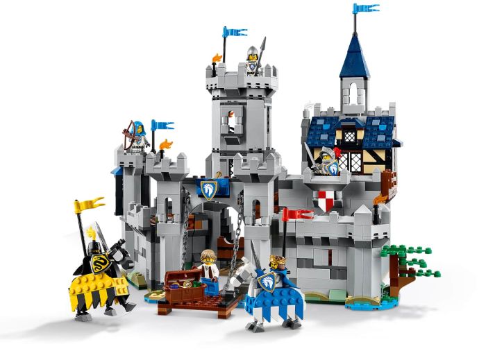 Boys and girls aged 9 and up have the choice of 3 different building options: an interactive castle playset, a jousting set with a small castle or a medieval town playset with a windmill. Each playset comes with 6 minifigures: a horse knight king, horse knight champion, horse knight archer, horse knight spearman, blacksmith and serpent knight, plus 2 posable horses.