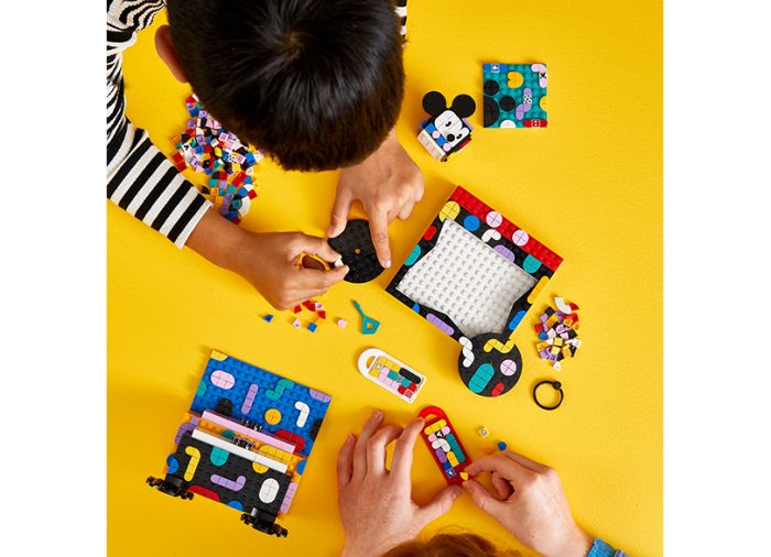 - Make, decorate, use – Wow any trendsetting kid or crafts fan with this LEGO® DOTS ǀ Disney Mickey Mouse & Minnie Mouse Back-to-School Project Box (41964). Creative fun starts when they open the box