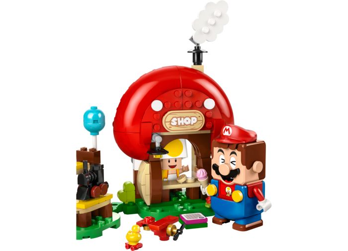 - Yellow Toad playset featuring a Nabbit toy figure – Role-play a trip to Toad’s Shop with this LEGO® Super Mario™ Expansion Set, featuring a brick-built shop and lots of fun accessories