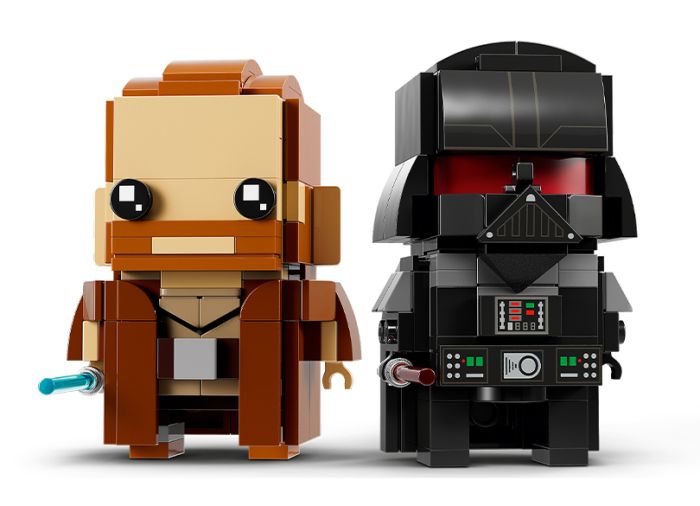 - Iconic Star Wars™ characters in LEGO® BrickHeadz™ style – Buildable LEGO BrickHeadz figures of Obi-Wan Kenobi and Darth Vader (40547) with lightsabers