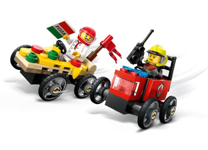 Treat your race fan to the LEGO® City Pizza vs. Fire Truck Race Car Pack (60458) for kids aged 5 and up. This fun racing set features 2 soapbox race cars and 2 minifigures. Kids can pit the chef in the sizzling pizza slice against the firefighter in the red-hot fire truck. Who’ll win? Take your seat for epic urban race action!