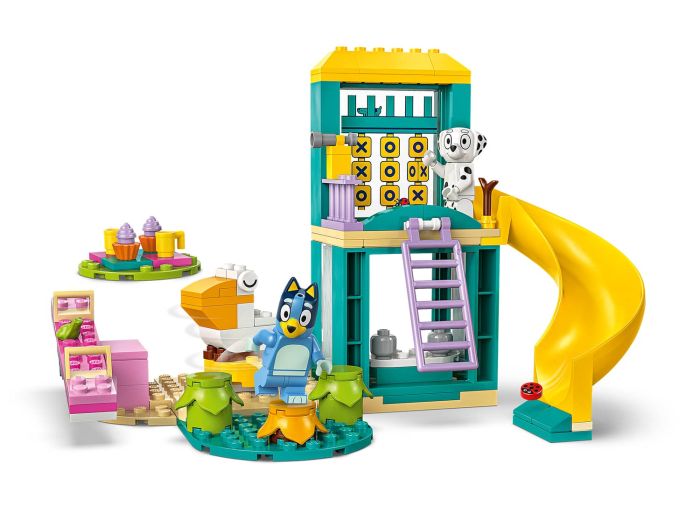- Interactive toy for kids aged 4 and up – Fans of the Bluey TV show join Bluey and Chloe minifigures in a vibrantly colored playground, complete with seesaw, slide, jungle gym and more