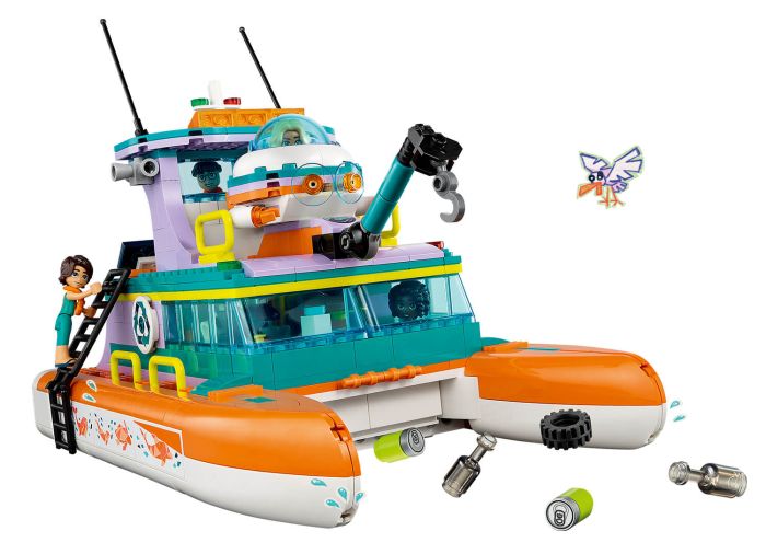 - Sea rescue play for kids aged 7+ – Kids who love the natural world can imagine cleaning up the shores of Heartlake City as they build and play with this fun LEGO® Friends Sea Rescue Boat set (41734)