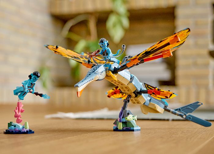 - What’s in the box? – Includes all you need to create a posable skimwing figure, Tonowari and Jake Sully minifigures, a Pandoran coral-reef setting and a display stand