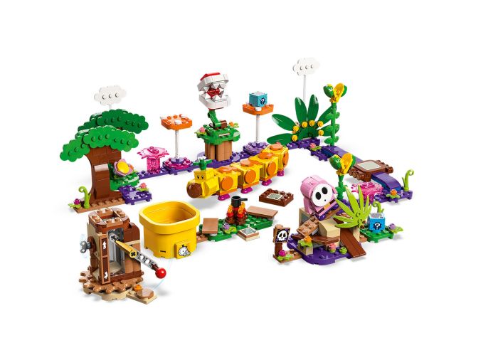 Add a LEGO® Mario™, LEGO® Luigi™ or LEGO® Peach™ figure (from sets 71439, 71440 or 71441 – sold separately) to this toy playset for interactive play. Earn digital coins for riding the Wiggler, toppling the Pink Shy Guy, crossing the poison swamp on the raft, and more.