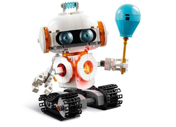 Boys and girls aged 8 plus play out stories among the stars with this LEGO® Creator 3in1 Space Robot (31164) science playset. This robot toy for kids is set on moving tracks and features a jetpack, a body and head that can spin around, posable arms and fingers, a balloon, and a light brick that illuminates its chest.