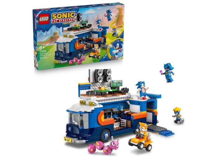 Thrill action and gamer fans aged 8 and up who love building toys with this Team Sonic Command Truck (77006) set. This fun LEGO® Sonic the Hedgehog™ kit features an awesome gaming truck toy with an opening side, a removable cabin, a stud launcher and a room with a launch function for the ATV. The set makes a popular gift and includes 5 figures – Sonic, Tails, Metal Sonic, Burrobot and Caterkiller – as part of this role-play toy for kids.