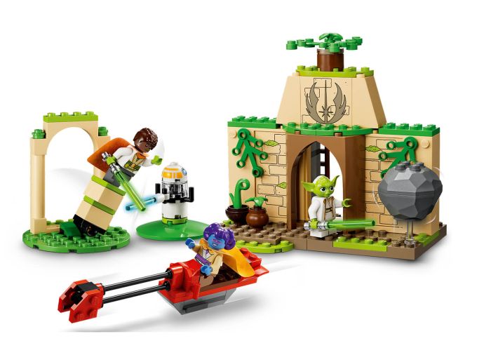 - 3 LEGO® Star Wars™ minifigures – Lys Solay and Kai Brightstar with mid-size legs and Master Yoda with small legs. Each character has a lightsaber for Jedi training