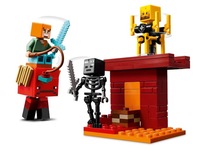 - Minecraft® activity set – Includes a buildable section of the Nether fortress bridge, plus Alex, wither skeleton, blaze and strider LEGO® Minecraft figures with weapons and accessories