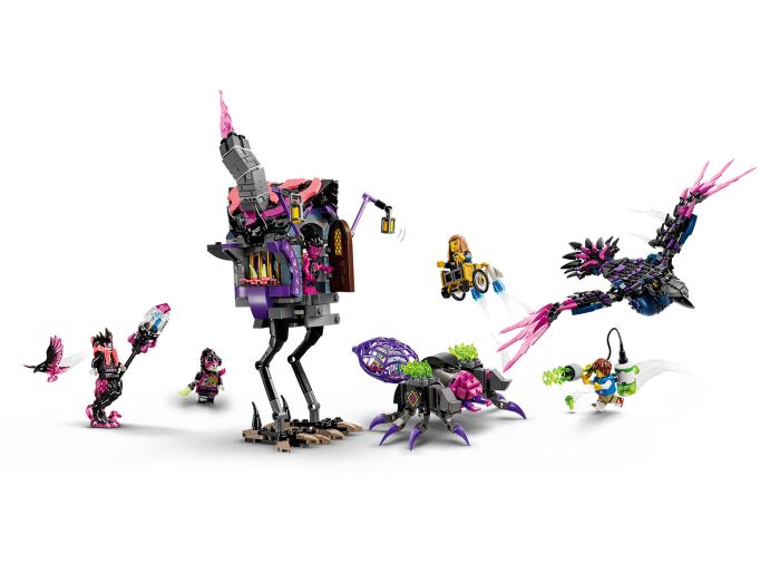 Young dreamers will have fun building the villainous Never Witch’s raven before transforming it into a raven-hut or a collection of 3 nightmare creatures: a walking house, a cauldron spider and a giant raven! The house toy has an opening roof and door, the spider toy has a movable cage and legs, and the raven toy has posable wings and feathers.