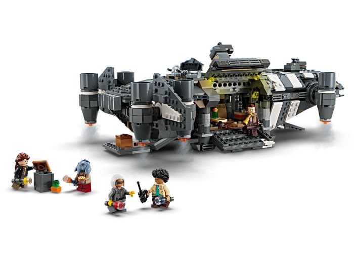 Kids become the heroes in their own Star Wars: Skeleton Crew stories with a detailed LEGO® brick recreation of The Onyx Cinder (75374). This collectible LEGO Star Wars™ buildable starship toy features rotating engines for landing/takeoff or flight, 2 stud shooters, 2 rotating turrets, each with 2 stud shooters, and a grabbing claw. It has seats for all 5 included LEGO Star Wars characters (the Jod LEGO minifigure in the cockpit and Wim, Fern, KB and Neel in the passenger compartment), plus storage for the 4 buildable flashlights and other cargo. There is also a kitchen table and a bed, plus accessory elements including fruit and a walkie-talkie to inspire creative play.