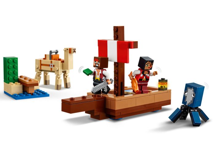 This LEGO Minecraft pirate adventure set includes a buildable vehicle toy, plus a squid, camel, 2 pirate figures and accessories. Featuring pirates and a boat, and the first-ever appearance of an adult LEGO Minecraft camel, this special LEGO set will appeal to Minecraft fans. The camel’s 2-seat saddle has room for both pirates to ride to their next adventure. Accessories, including a fish, map, iron sword and a cactus help inspire imaginative play. The set combines easily with other LEGO Minecraft sets (sold separately) for even more play possibilities.