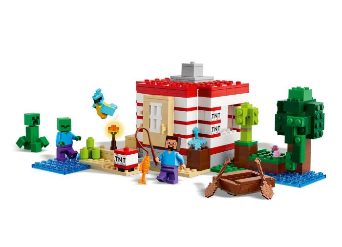 The buildable house is set in the Minecraft jungle biome and looks like a large-scale version of the game’s iconic TNT element. A switch on the side lets kids trigger an exploding TNT function, which collapses the entire house. When the dust settles, kids can rebuild the house so it’s ready for their next adventure. Steve, Creeper™ and zombie minifigures inspire imaginative play and battle action. Authentic LEGO Minecraft accessories include a boat, fishing rod, fish, parrot and jungle foliage. The LEGO® Builder app gives kids the added fun of using their device to zoom in and rotate models in 3D. Contains 287 pieces.