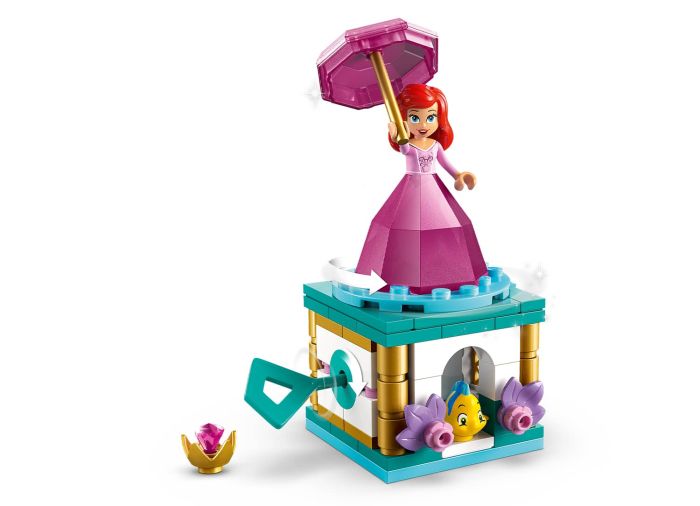 - Engaging building toy – Turn the key on the stand to spin the plate and twirl Ariel around, then store the LEGO® ǀ Disney minidoll figure inside the ‘diamond’ dress using the umbrella as a lid