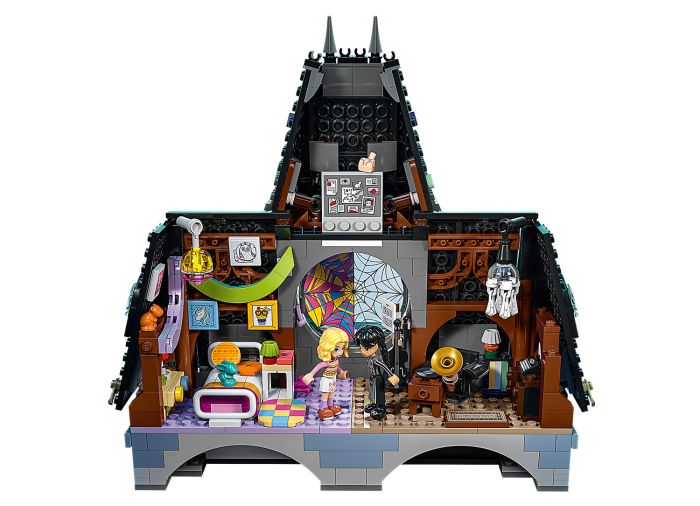 - Nevermore Academy set – The school playset includes a buildable dorm room with a spiderweb window that opens, a base with buttons that open secret drawers and a balcony with 4 gargoyles