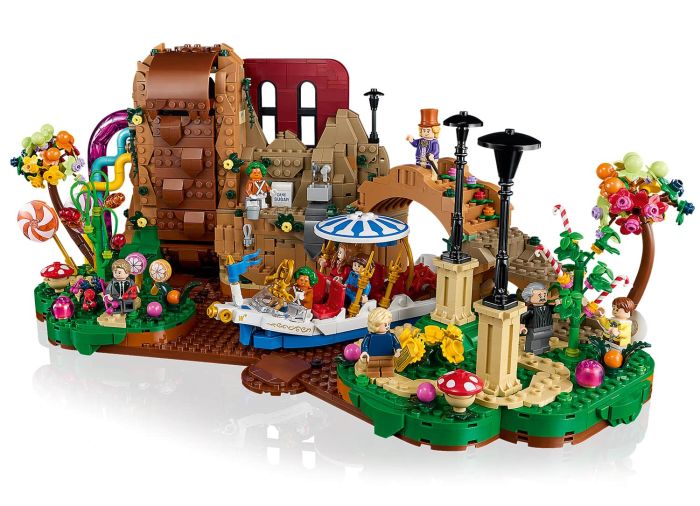 - Willy Wonka & the Chocolate Factory movie LEGO® set – Turn the dial to operate the chocolate waterfall and place an Oompa Loompa, Willy Wonka and the 5 Golden Ticket winners in the Wonkatania boat